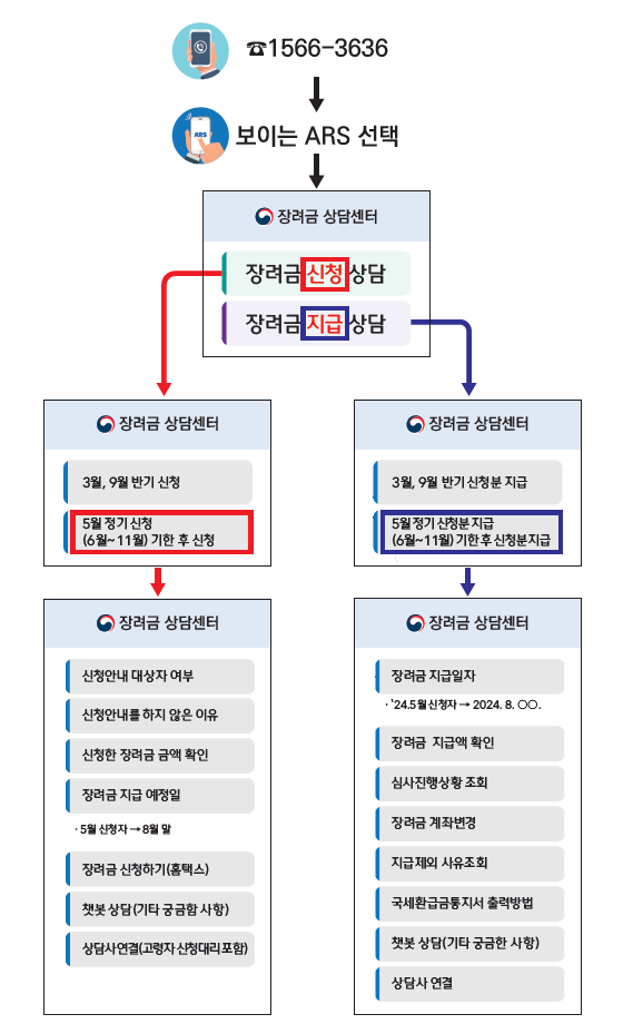 고령자 또는 중증장애인이 스스로 신청하기 어려운 경우 장려금 상담센터로 전화하여 신청대리 요청하시면 됩니다. ![]() |